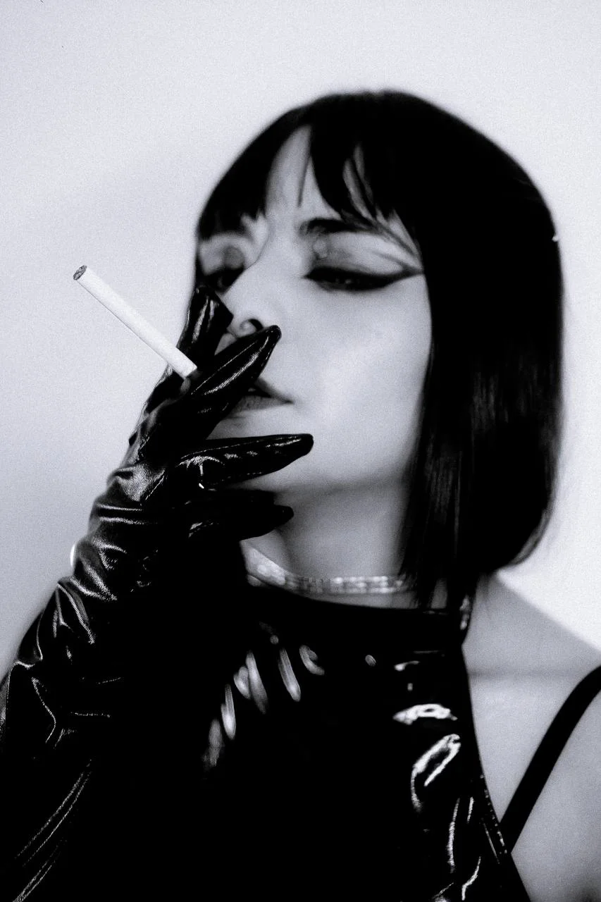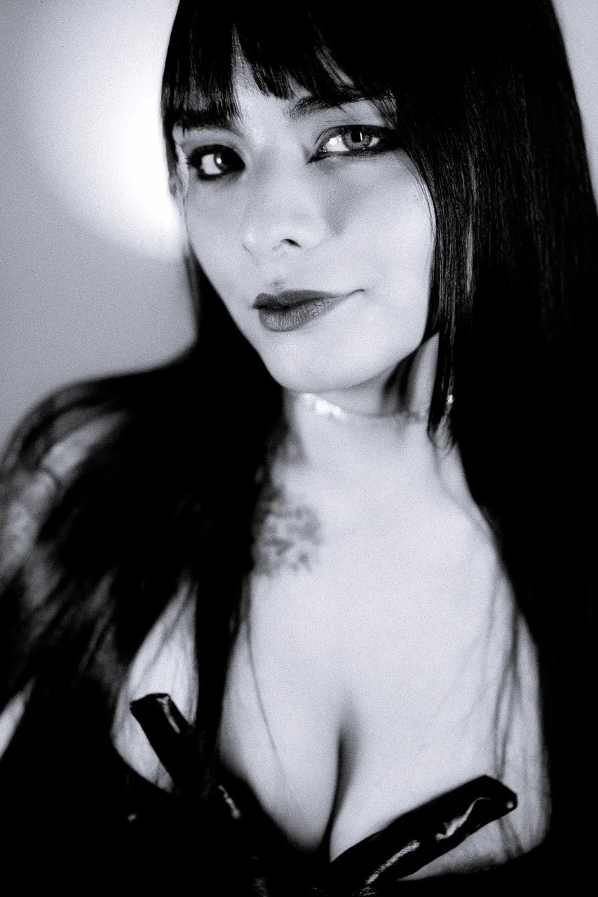 Raven-black hair, slender yet sinful curves. She doesn’t need to show it all for you to feel it all. 🌙💄
